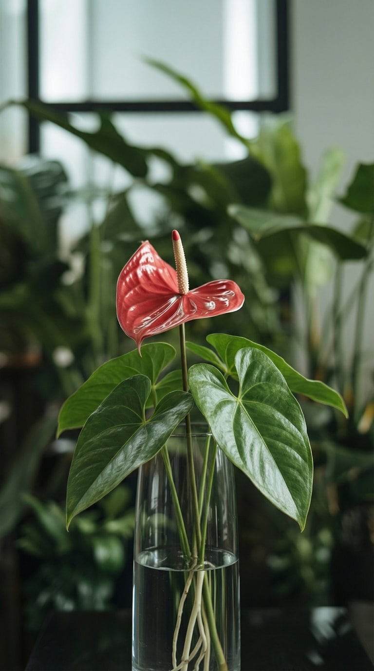 Unlikely Blooms: Anthuriums require optimal conditions and abundant energy to produce their signature spathe and spadix. A plant merely surviving in water will rarely, if ever, bloom. If it does, the flowers will be small and lackluster.